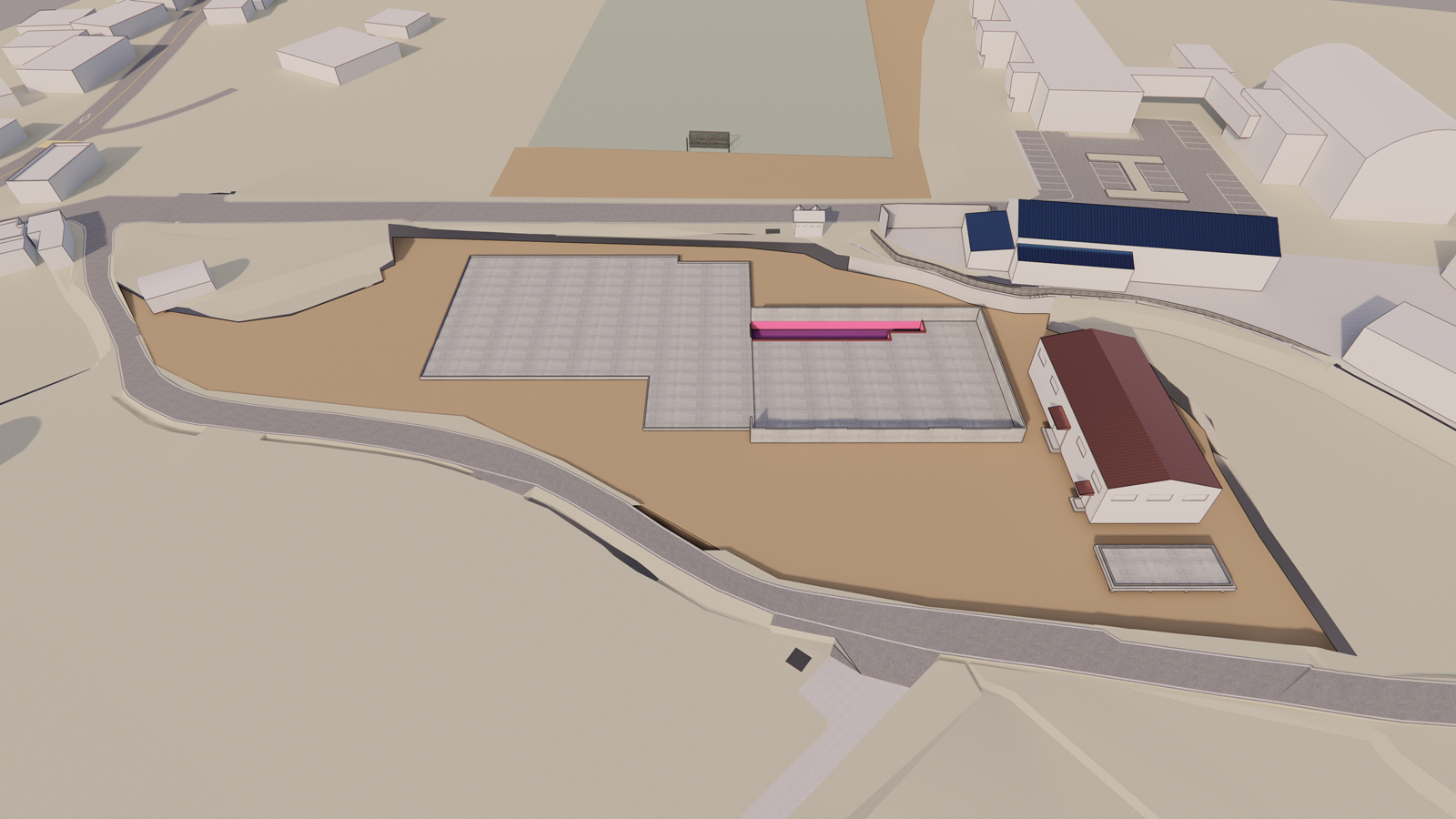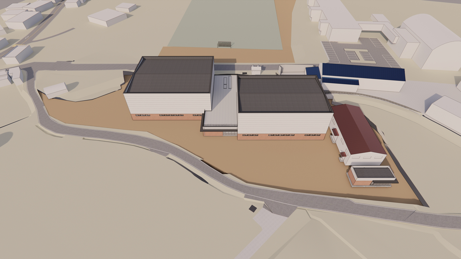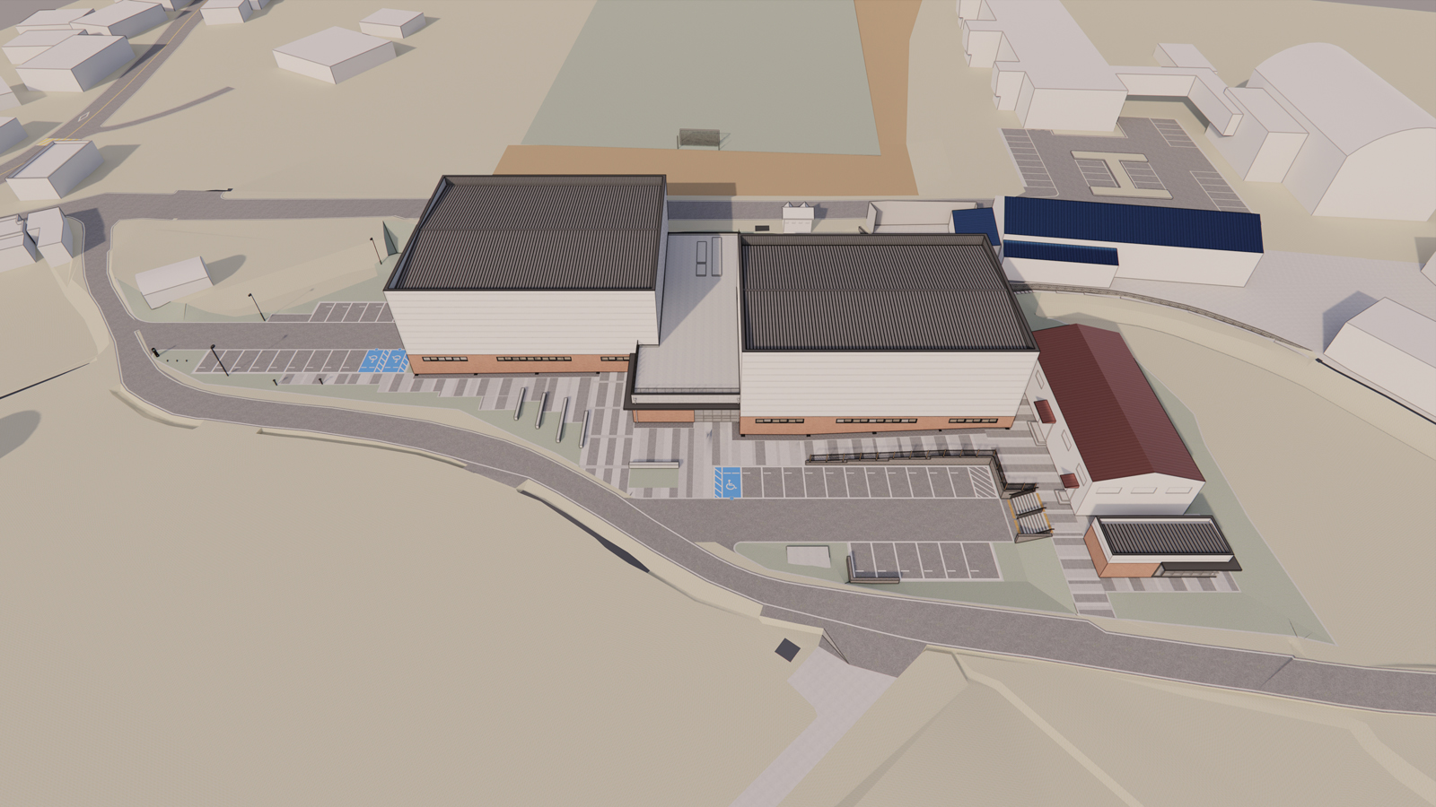 건물은 단정한 두 개의 매스를 기본으로 구성하고, 하부는 벽돌, 상부는 밝은 금속 패널을 적용해 주변 저층 주거지와 자연스럽게 어울리면서도 공공체육시설로서의 명확한 인지성을 확보하였다. 불필요한 장식을 배제한 절제된 입면 구성과 재료의 대비를 통해, 단아하면서도 안정적인 외관을 형성한다.